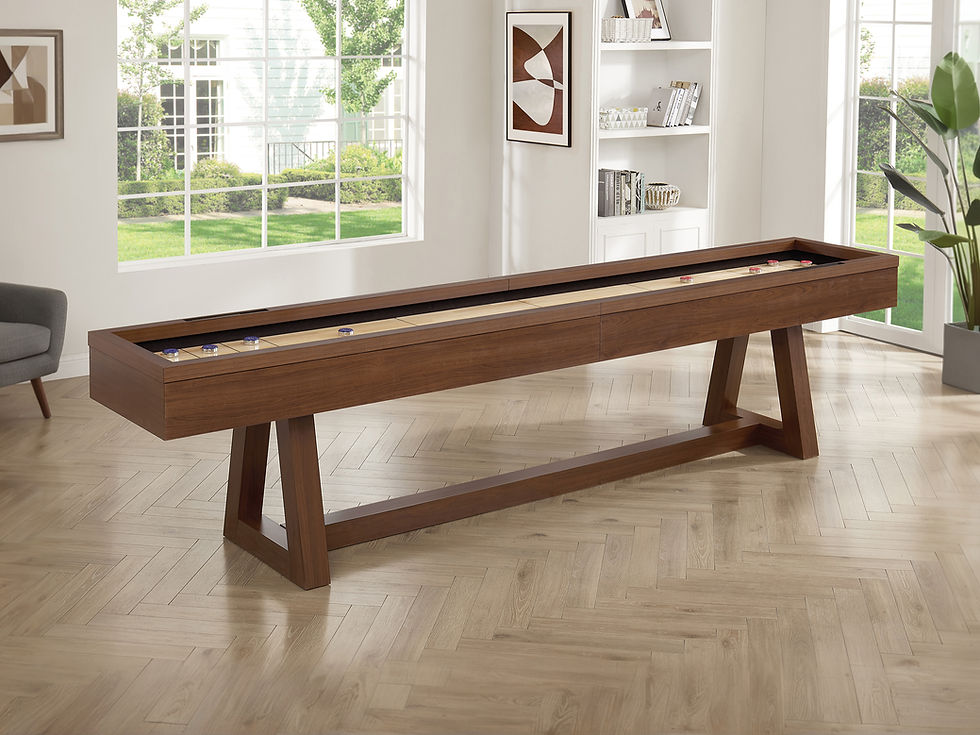 Imperial is a premier shuffleboard table dealer. The Imperial Shuffleboards are authentic pub-style tables made of solid wood and finished to match our signature pool tables. Our shuffleboard tables feature beautiful inlaid scoring markers, adding to their high-end look. The tables also include four red and four blue pucks, a powder can, and a playfield brush. We offer 9-foot and 12-foot shuffleboard tables.