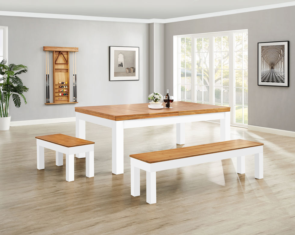 Penelope II Pool Table in Acacia & White with Dining Set