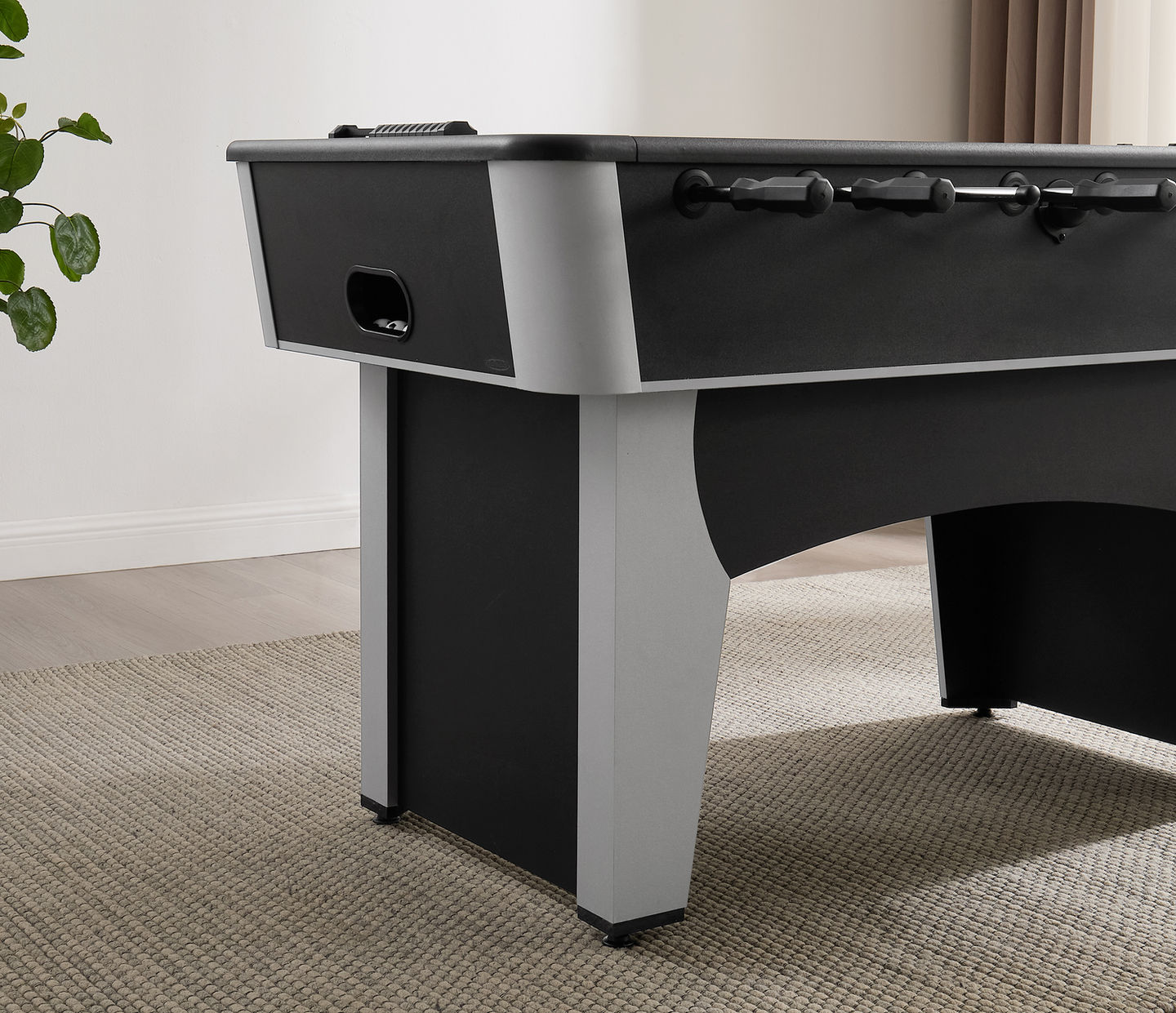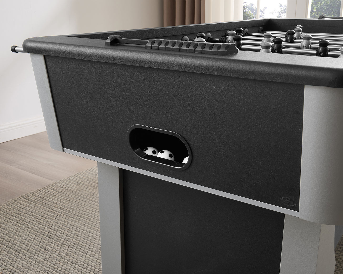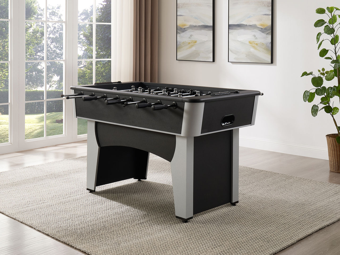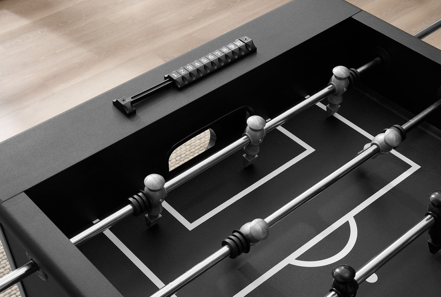 The Astro Foosball Table combines sleek contemporary styling with smooth, competitive gameplay. Finished in matte black with crisp silver accents, it features precision steel rods, balanced players, and integrated scoring for fast-paced matches - bringing modern design and classic foosball action together in one striking table.